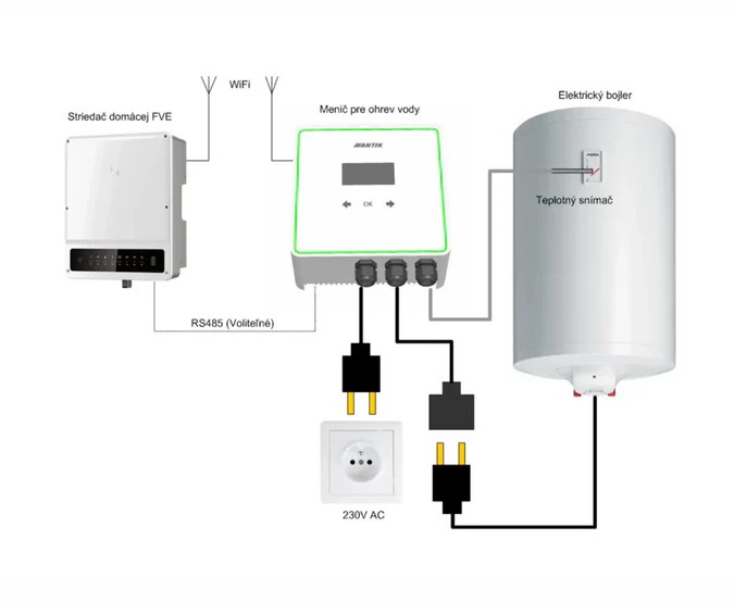 Toto zařízení však automaticky rozpozná tyto přebytky a nasměruje je přímo do elektrické spirály vašeho bojleru nebo akumulační nádoby. Voda se tak zahřívá zcela bezplatně, bez potřeby drahých baterií nebo složité instalace.