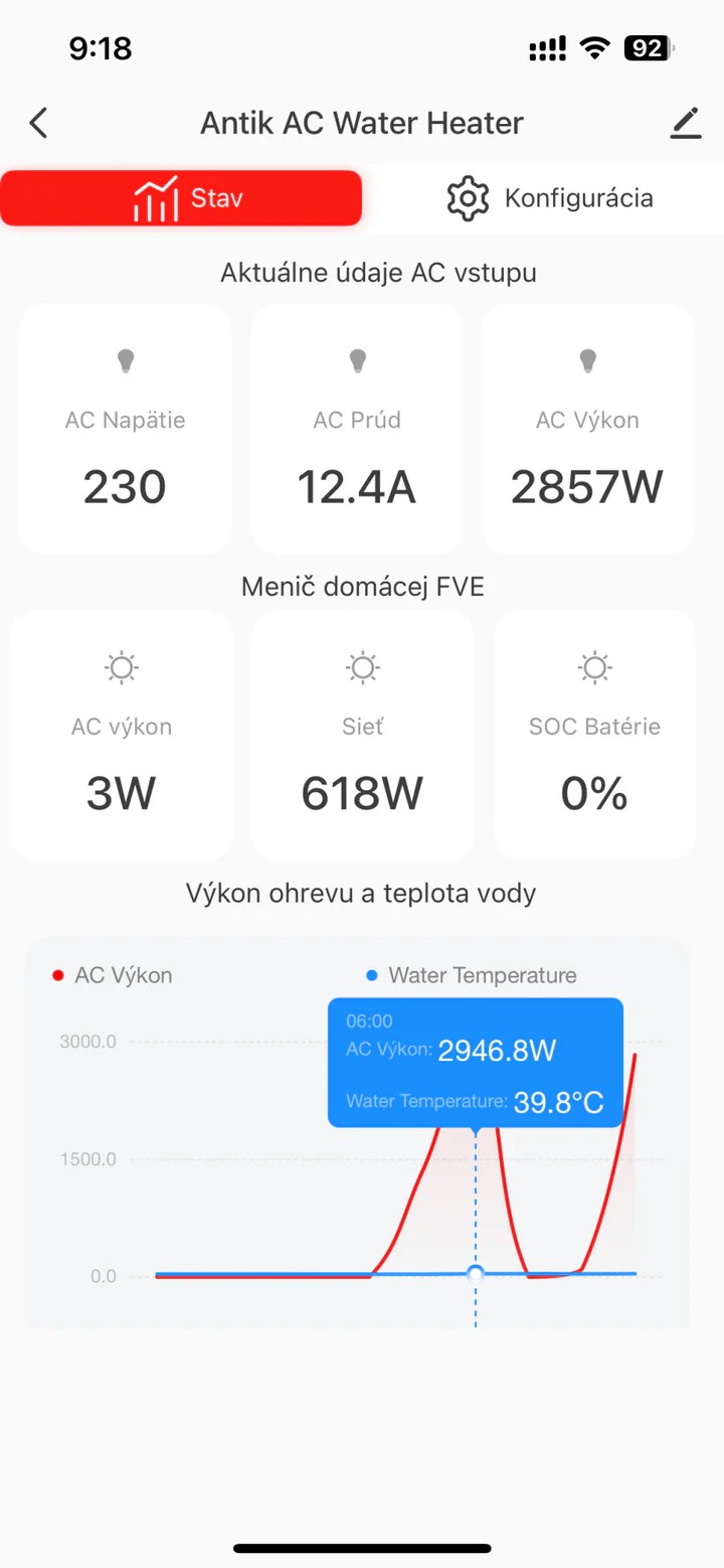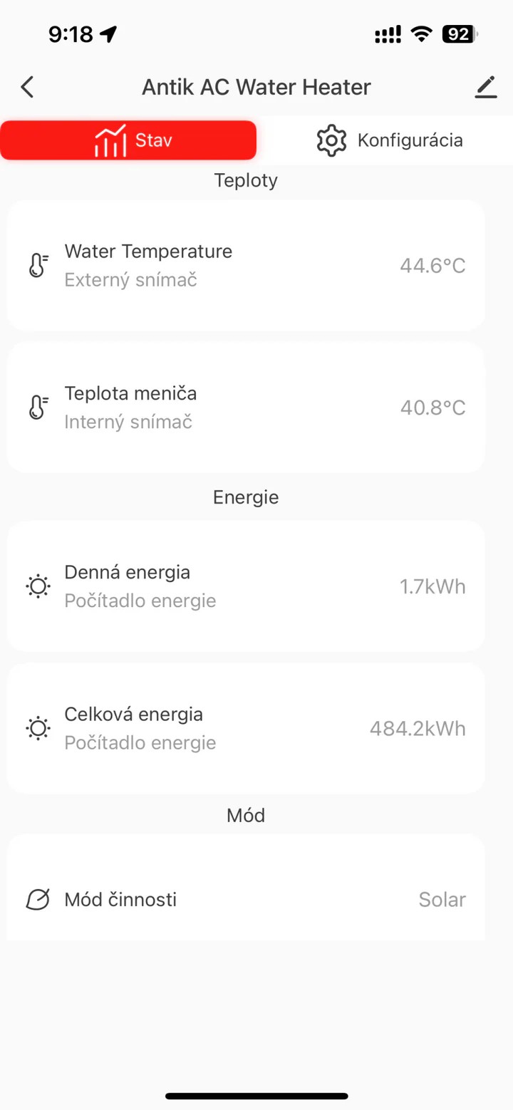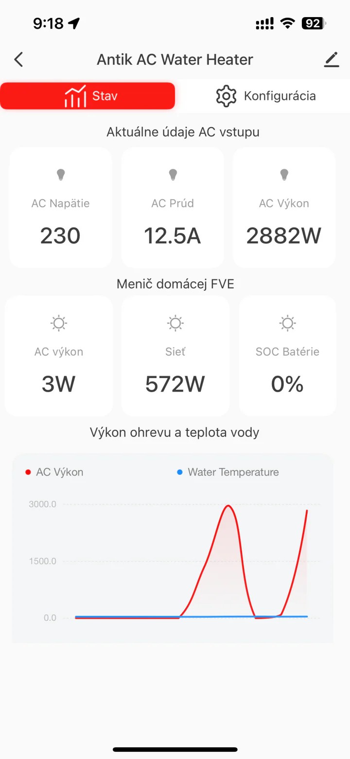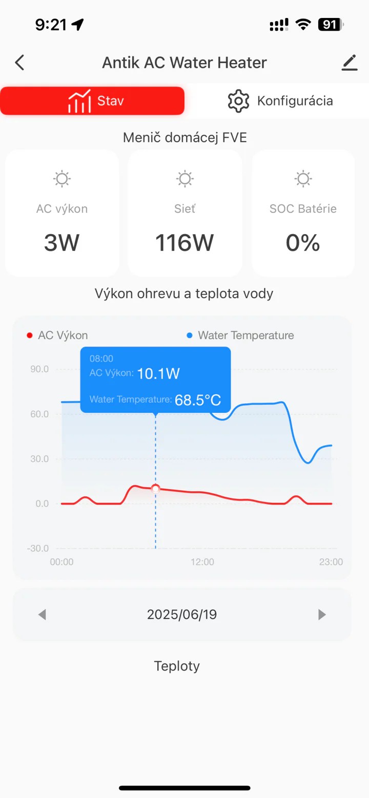 Měnič ANTIK Smart pro ohřev vody z přebytků umožňuje plně inteligentní ovládání a optimalizaci provozu přímo z vašeho chytrého telefonu.