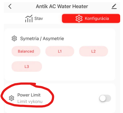 V případě zakázaných přetoků zapněte POWER LIMIT
