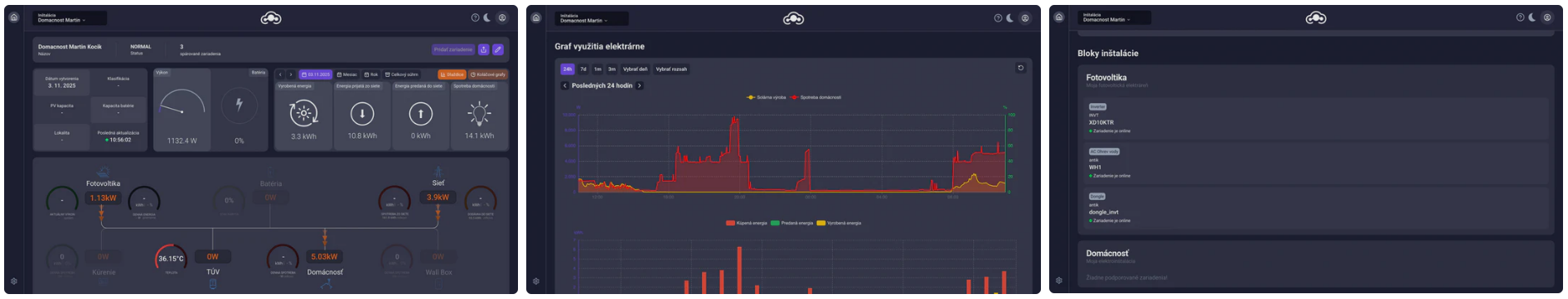 Antik Cloud poskytuje detailní přehled o výrobě, spotřebě a distribuci energie v reálném čase, čímž umožňuje přesné sledování a vyhodnocování energetických toků. Uživatel okamžitě vidí efektivitu systému a místa potenciálních ztrát, což umožňuje včasné zásahy a optimalizaci provozu.