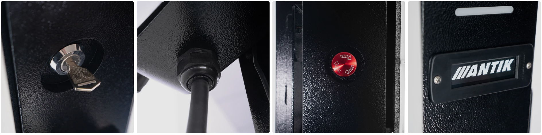 Při návrhu zařízení se myslelo také na komfort uživatele. Intuitivní ovládání a přehledné zobrazení stavu nabíjení jsou zabezpečeny LED indikátory pro každý výstup a OLED displejem umístěným na boční straně. MiFare čtečka karet umožňuje kontrolovaný přístup pouze oprávněným osobám, což je výhodné při firemním nebo veřejném použití. Mobilní aplikace Antik Smart Home doplňuje možnosti o detailní sledování průběhu nabíjení, plánování časů a přehled spotřeby, díky čemuž je používání wallboxu pohodlné, efektivní a bezpečné.