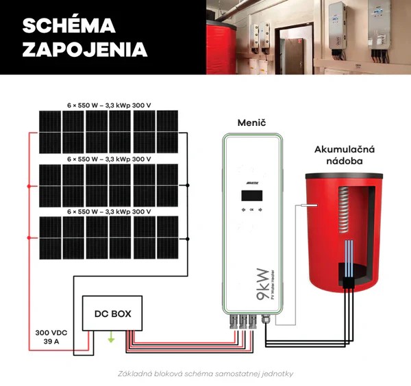 Na rozdíl od běžných řešení, která vyžadují měnič a komplexní konverzi energie, tento systém umožňuje přímé napájení odporových zátěží (např. topná tělesa v bojleru) ze stejnosměrného výstupu solárních panelů přes výkonovou jednotku.