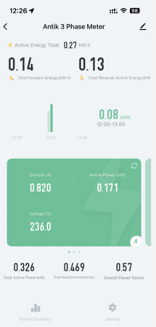 S aplikací ANTIK SmartHome® jednoduše sledujete spotřebu elektrické energie v třífázové síti.