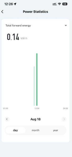 Poskytuje přehlednou statistiku spotřeby energie. Graficky zobrazuje denní, měsíční nebo roční údaje o spotřebě. Je možné sledovat celkovou spotřebu "dopředné" energie (total forward energy).