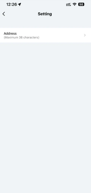 Tato obrazovka je určena ke konfiguraci zařízení. V konkrétním případě na snímku je viditelná možnost "Address" (Adresa), která umožňuje uživateli upravit název (adresu) třífázového měřiče v rámci aplikace Antik Smart Home, aby bylo snazší jej identifikovat.