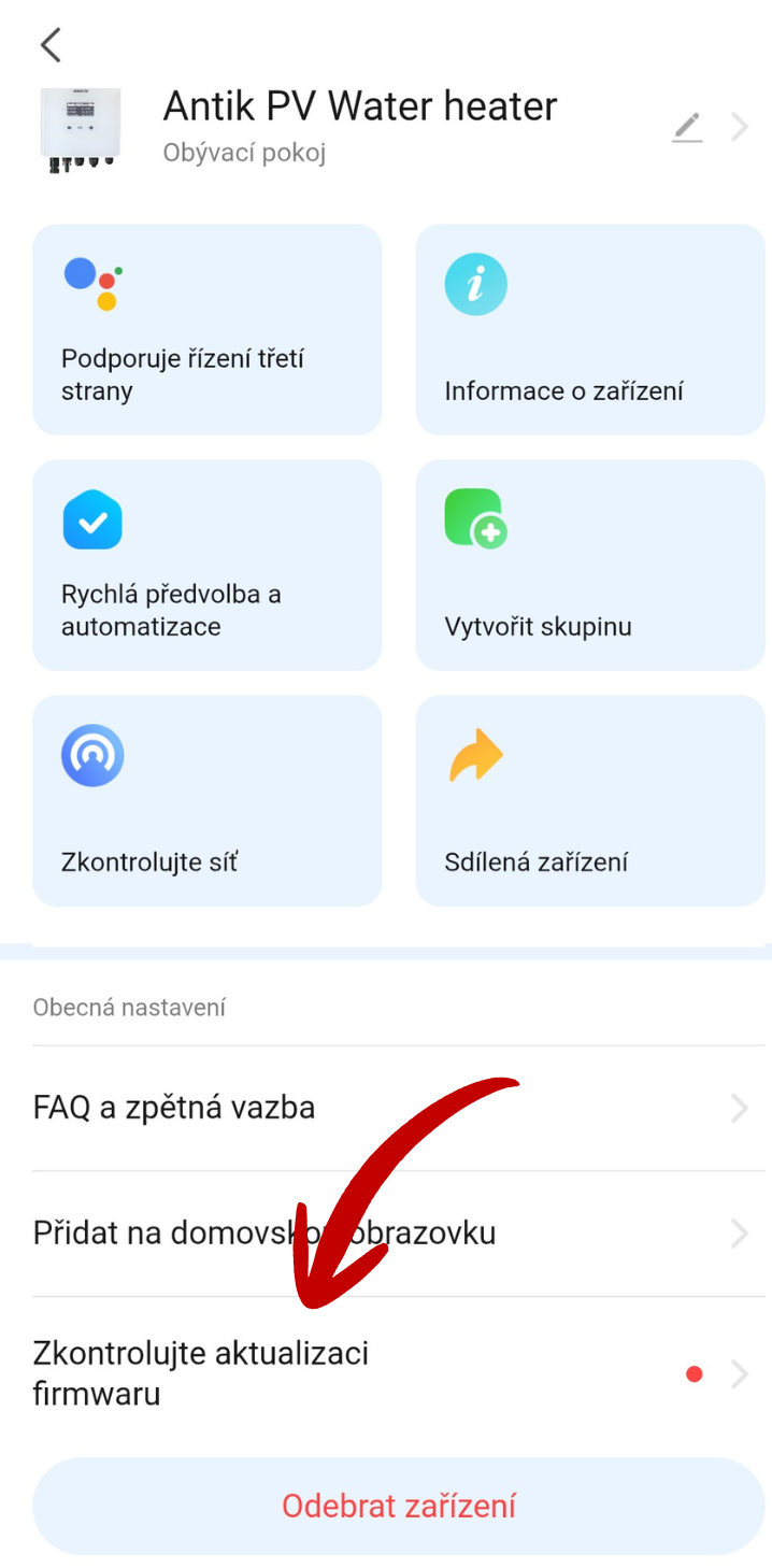 Ve spodní části obrazovky stiskněte - kontrola firmwaru.