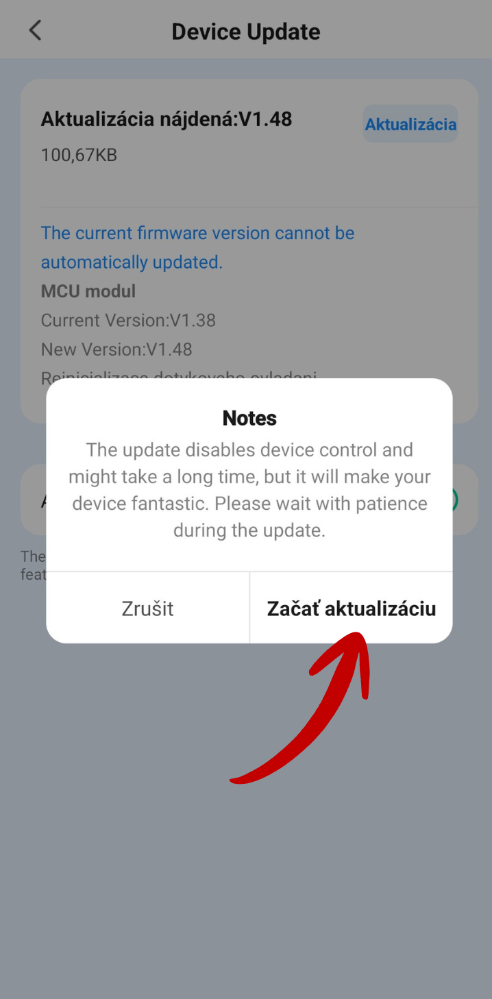 Potvrďte začátek aktualizace